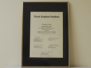 認定証です。 ブローネマルク・インプラント・ベーシックコース。世界で一番多く使用されていて、最も信頼されているインプラントの基礎コースです。